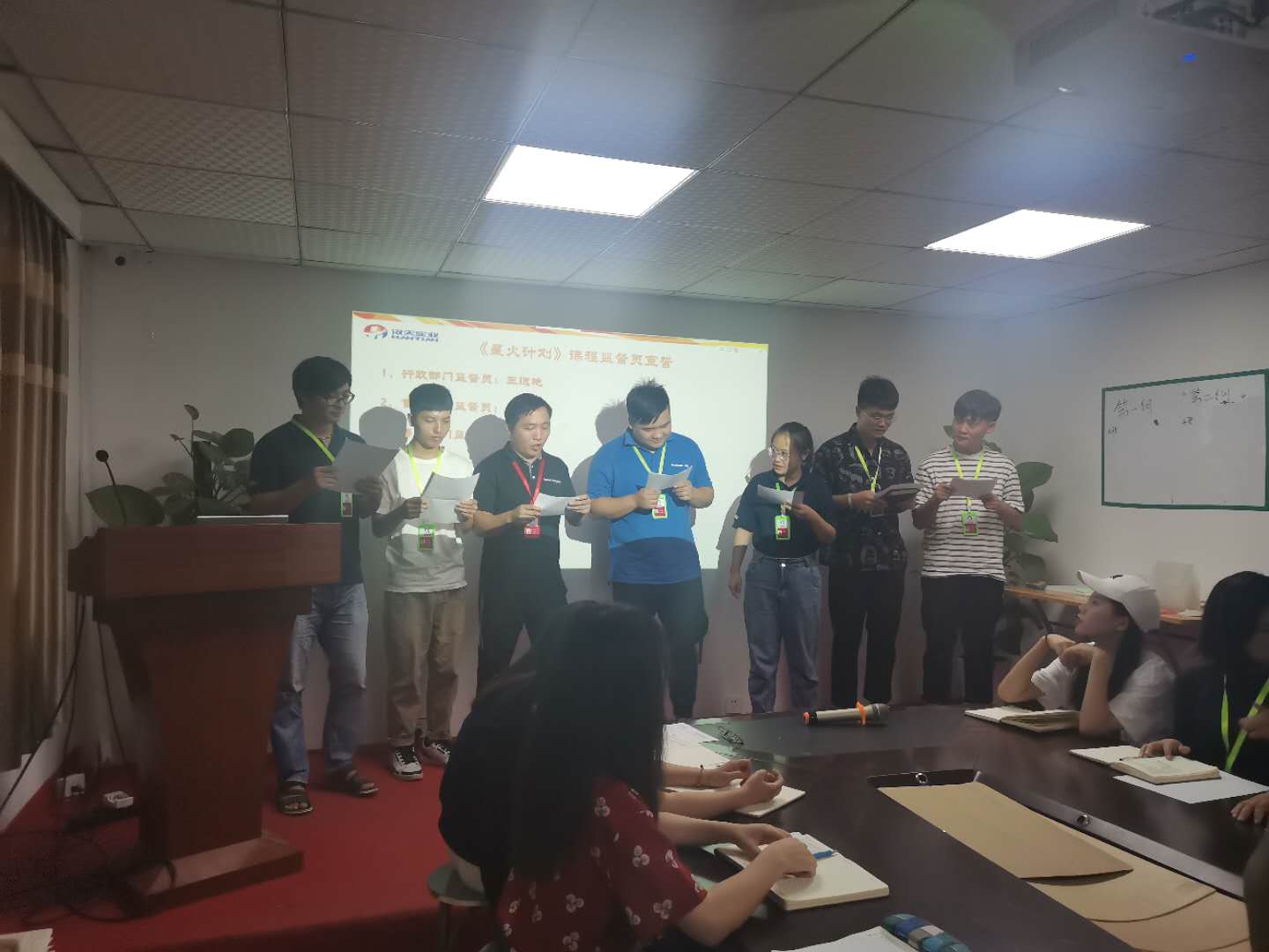 《星火計(jì)劃》的各部門監(jiān)督員帶領(lǐng)自己的組員宣誓。售前部門宣誓