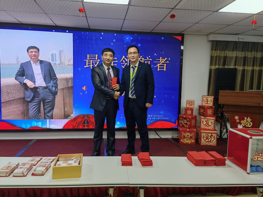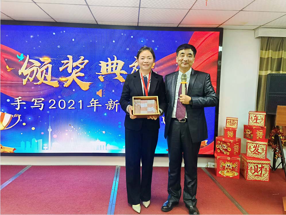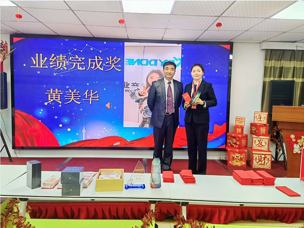 2021年,她帶領(lǐng)著他們的團(tuán)隊(duì),不僅超額完成了公司領(lǐng)導(dǎo)布置的任務(wù),而且為項(xiàng)目今后的良性運(yùn)作打下了堅(jiān)實(shí)的基礎(chǔ), 由業(yè)績完成獎(jiǎng)獲得者黃美華上臺(tái)領(lǐng)獎(jiǎng),楊總頒獎(jiǎng)