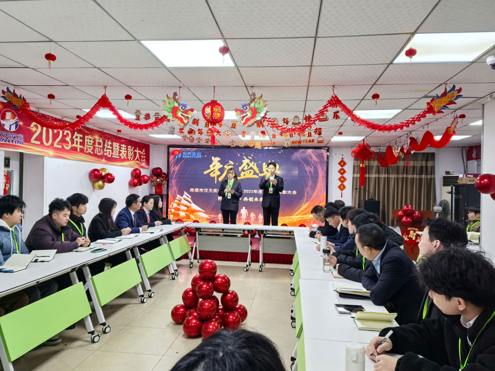 辭別玉兔迎金龍,新年氣象樂融融,2024年2月3日,南昌市漢天實業(yè)有限公司迎來了以“同心同行、共創(chuàng)未來”為主題的2023年度總結暨表彰大會。砥礪奮斗辭舊歲,攜手同心譜新篇,2023年即將落下,2024年開始演奏最新的華章。漢天實業(yè)的員工們相聚一堂,在主持人的熱情祝福中,拉開了年終總結大會的序幕。