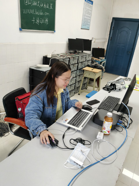 勤勞的漢天技術工程師博金,正在學校認真的調試著設備