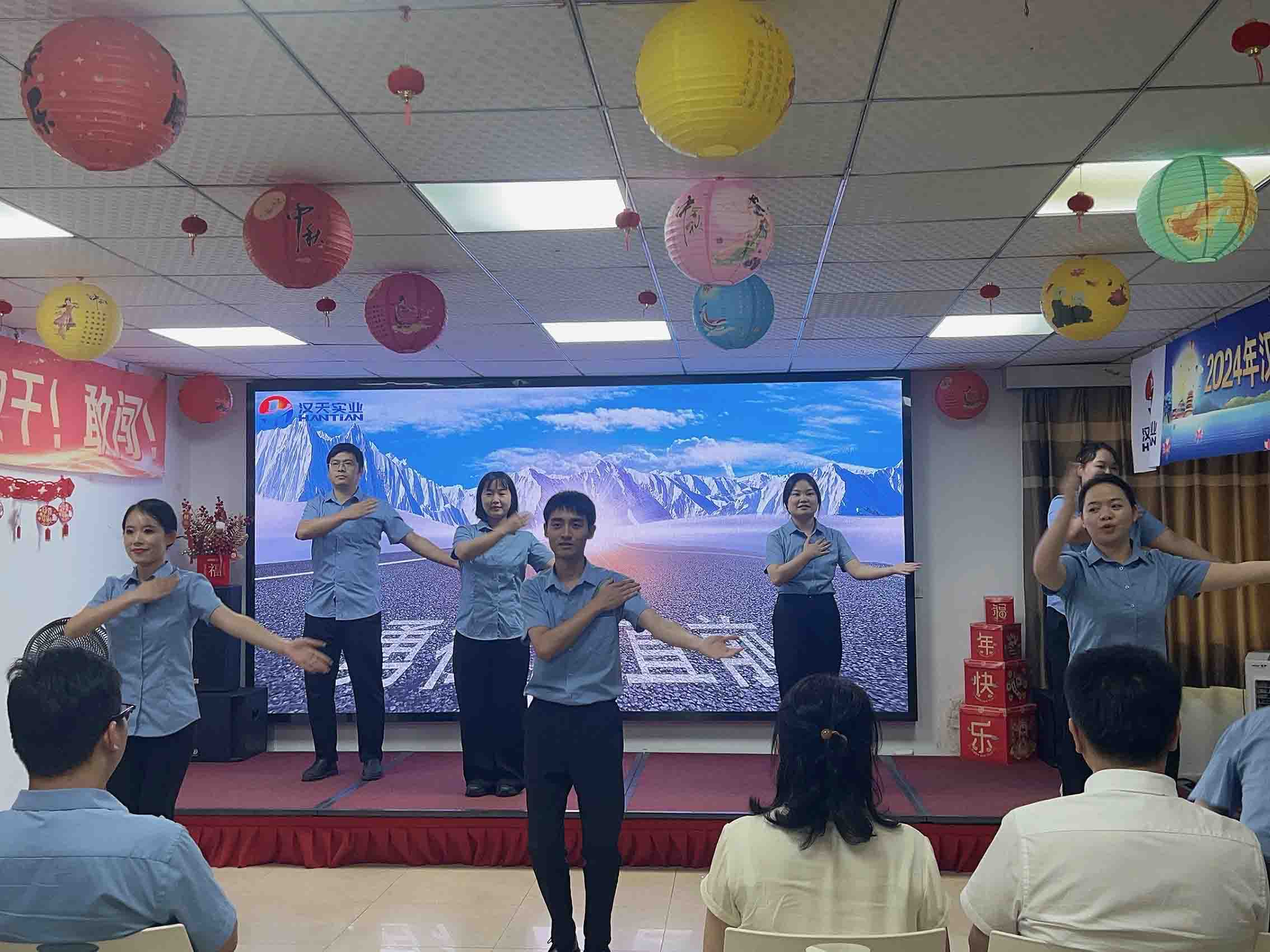 活動由漢天管理層們的舞蹈表演作為開場,瞬間點燃了現場的熱情與期待。隨著動感的音樂響起,公司管理層們以整齊劃一的步伐和充滿活力的舞姿,演繹了《勇往直前》這首勵志歌曲。他們身著統一的服裝,面帶微笑,每一個動作都充滿了力量與激情,展現了我們漢天人積極向上,勇于挑戰的精神風貌。